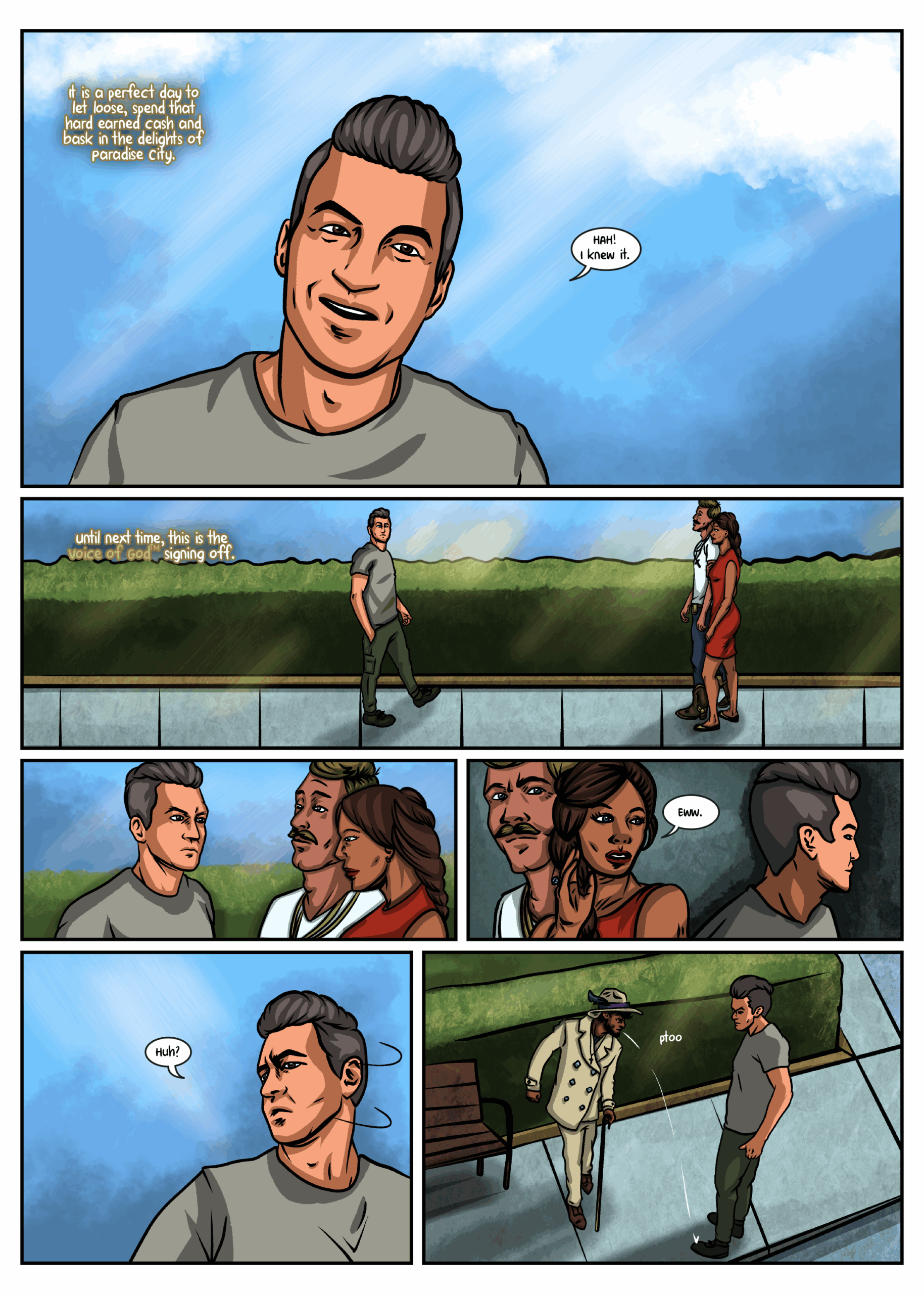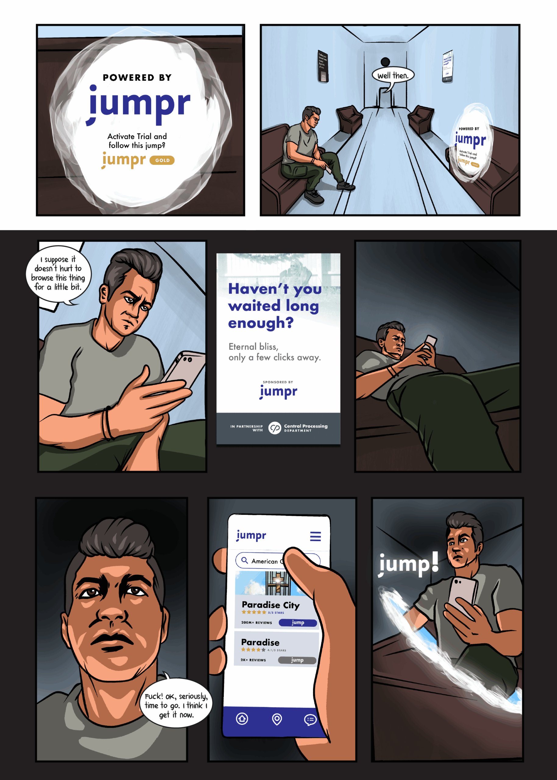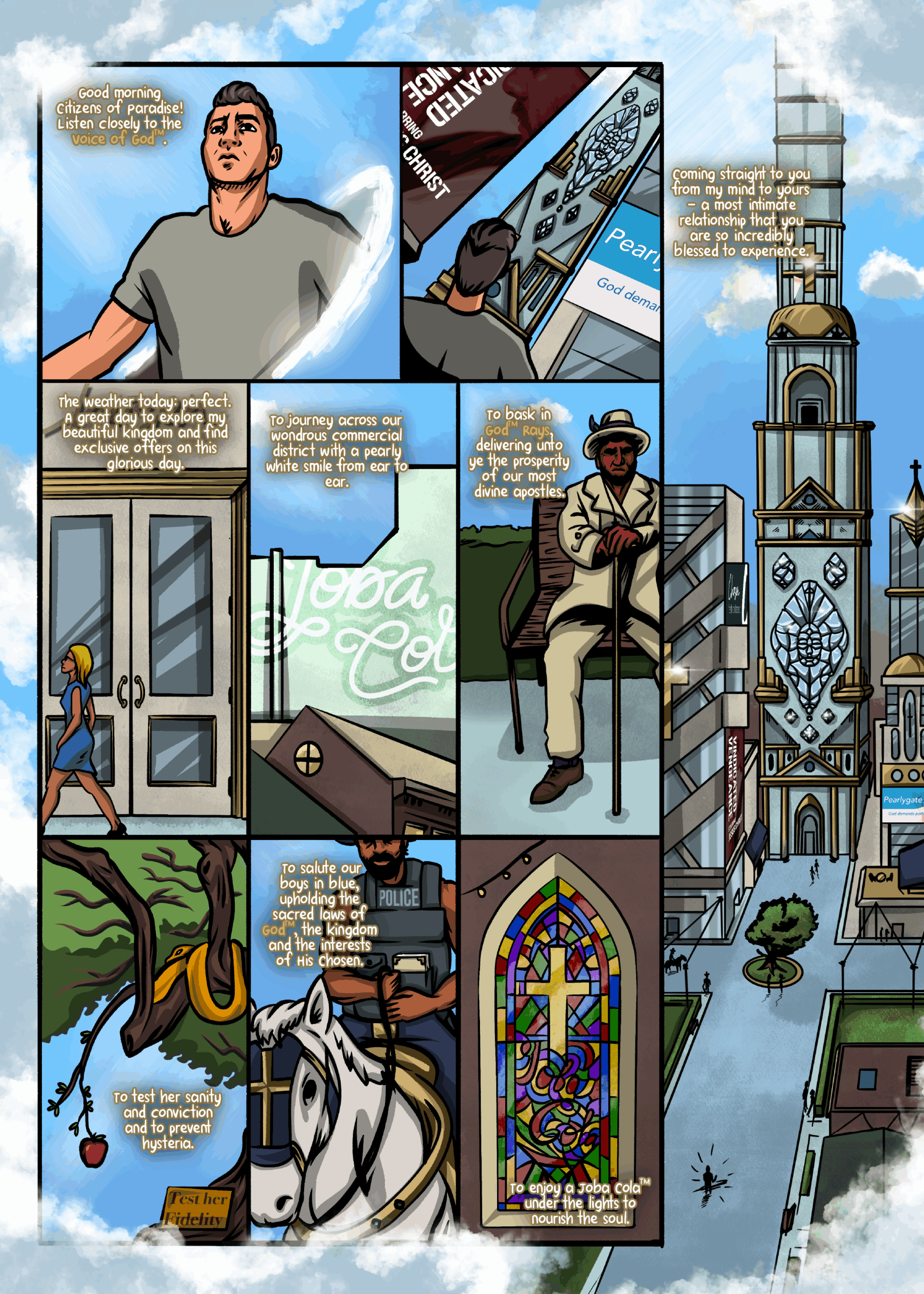 A lot of thought went into the world building, trying to tell readers more about the world through the background artwork. As a designer by trade, I spent quite a bit of time working on company brands, posters and other advertisements that mirror a lot of the craziness in our own world.